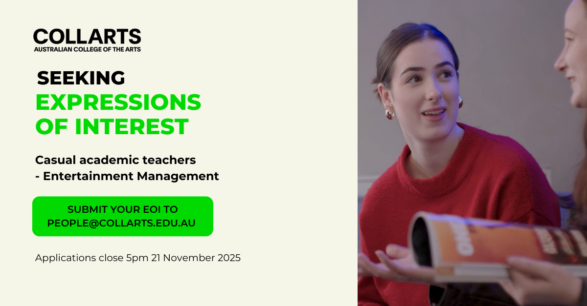 Collarts is seeking expressions of interest for Casual Teachers to join our Entertainment Management program in 2026.