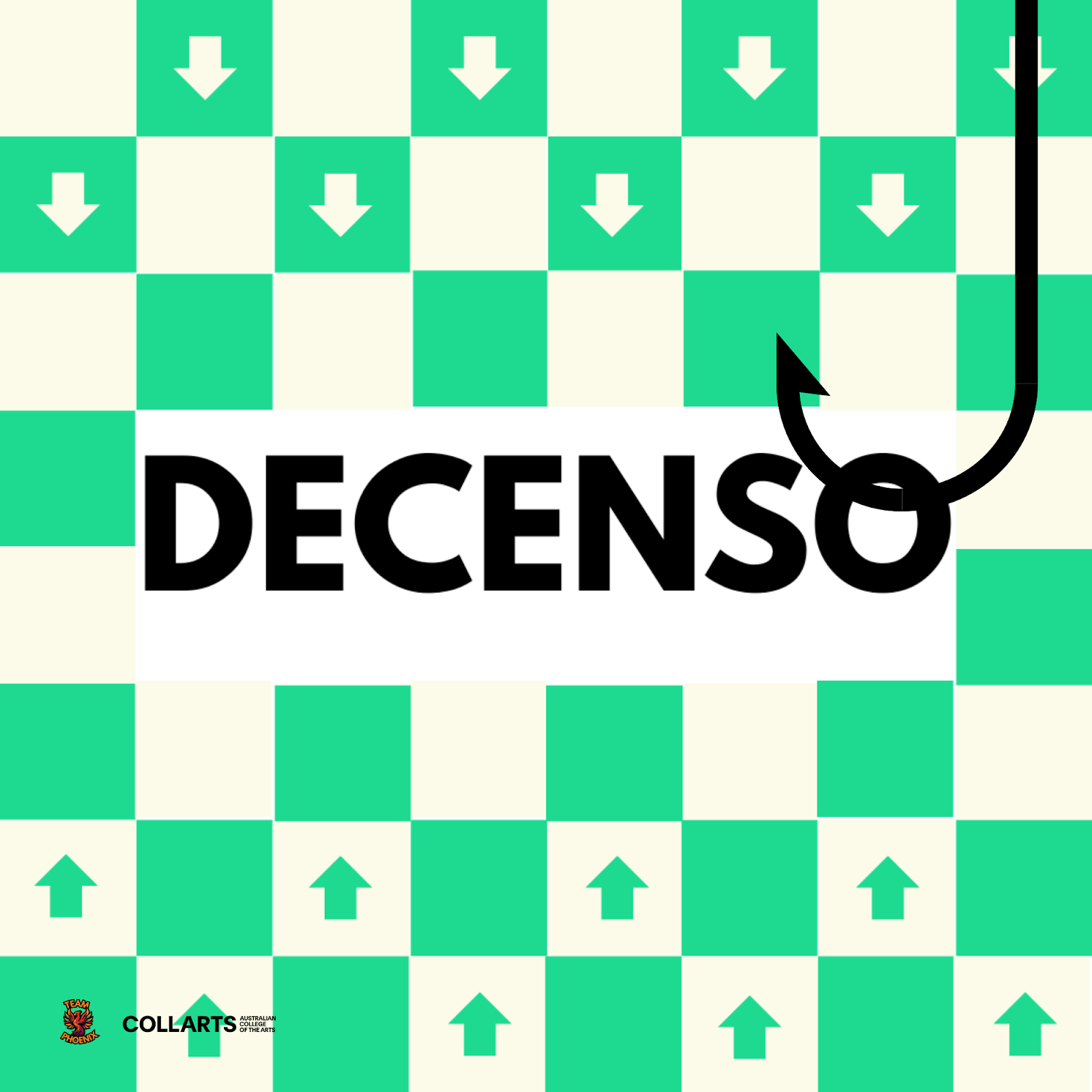 'Decenso' by Alvaro Alcala Retolaza - Reskinned for a sustainability focused repurposing of household wooden toys for family friendly party games. Rules and area printed on a yoga playmat.